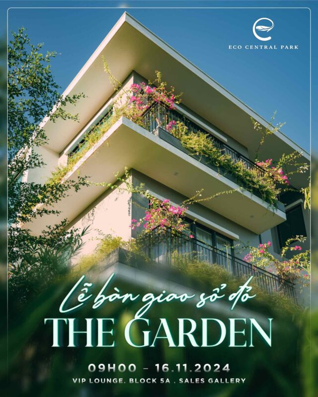The Garden là phân khu đầu tiên được ra mắt tại khu đô thị Eco Central Park, với tổng cộng 285 sản phẩm thấp tầng được thiết kế theo tiêu chuẩn hiện đại, bao gồm: nhà phố đại lộ, nhà phố vườn, biệt thự vườn song lập và biệt thự vườn đơn lập. Mỗi sản phẩm đều được chú trọng đến từng chi tiết, nhằm mang đến không gian sống xanh, hiện đại và gắn kết với thiên nhiên.